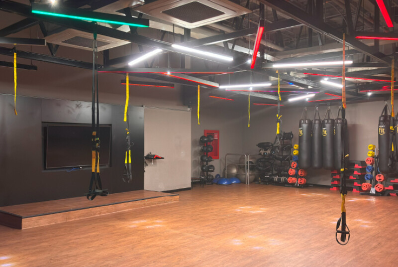 Como parte de los servicios ofrecidos en las instalaciones, contamos con Duchas, Vestuarios, Caminadores, Bicis fijas, Estacionamiento, Aire acondicionado y Personal trainer.